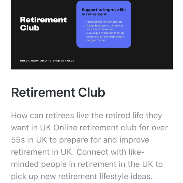 Promote and market your own products and services with articles and advertorials aimed at people in the over 55 age category. Enter retirement member only areas to access additional members only benefits. Promote your business for up to 12 months.